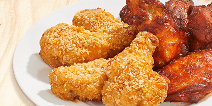 4 x Chicken Wings Hot & Spicy, 4 x Crunchy Chicken Wings, inkl. 1 Dip.