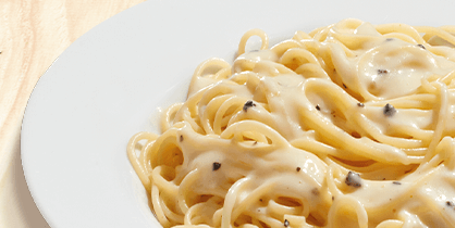 Pasta nach Wahl mit Trüffel-Sahne-Sauce. Auf Wunsch mit Käse überbacken.