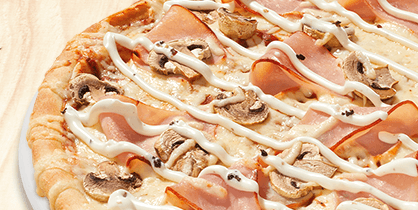 Mit geräucherter Putenbrust (halal, aus Fleischstückchen zusammengesetzt), frischen Champignons und Trüffelmayonnaise.